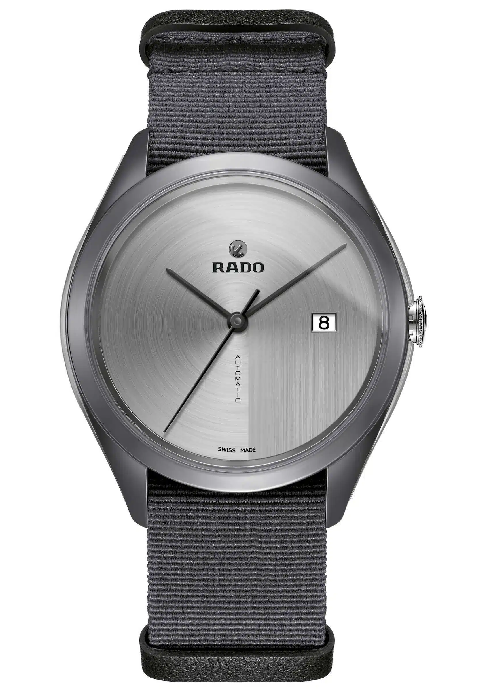 Logotipos de Rado y “Automatic” de color gris.