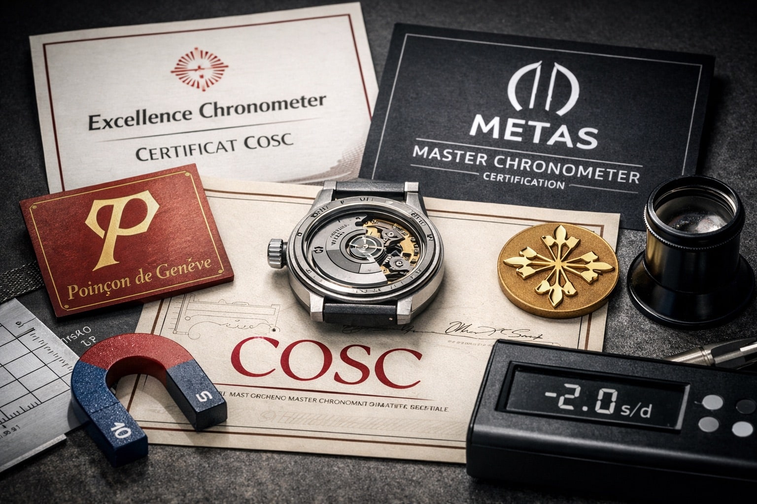 El Contrôle Officiel Suisse des Chronomètres ha sido, desde 1973, la referencia en certificación independiente de precisión. Su método, basado en la norma ISO 3159, ha garantizado durante décadas un estándar homogéneo para movimientos mecánicos.