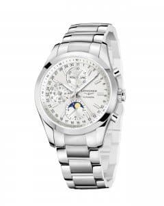 En el marco del torneo de Roland Garros 2015, Longines presentará un modelo de la nueva colección Conquest Classic Moonphase. Con caja de acero de 42 mm sobre brazalete de acero, el nuevo reloj cuenta con una esfera plateada con 9 índices aplicados, con Super- LumiNova®. Además de con cronógrafo, el Conquest Classic Moonphase cuenta entre sus funciones con horas, minutos, segundero pequeño con indicador de 24 horas a las 9, día de la semana, mes y fases de la luna. La fecha está indicada por la aguja central con forma de medialuna.