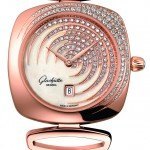 La atractiva forma de la caja de la colección Pavonina se remonta a los años veinte, cuando estaba de moda utilizar la distintiva forma cojín en los relojes de pulsera. Los diseñadores de Glashütte Original han modificado ligeramente la forma, adaptándola a la mujer actual e integrando asas flexibles en la caja. El relojero sajón ha solicitado la patente de esta solución, que permite un ajuste perfecto entre el reloj y la muñeca de la mujer. Estos elegantes relojes, con una medida de 31 x 31 mm, presentan cajas con tres versiones diferentes: una versión fresca y luminosa en acero inoxidable, otra combinación bicolor en acero inoxidable y oro rojo, y una cálida y radiante versión en oro rojo de 18 quilates.