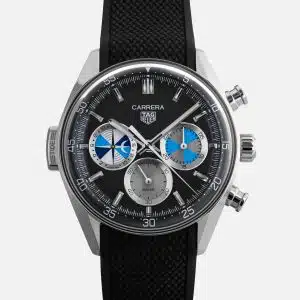 Las manecillas del reloj, que mantienen la forma icónica del Carrera, están recubiertas con Super-LumiNova para garantizar su visibilidad en condiciones de poca luz. Aunque se mantiene el logotipo de TAG Heuer Carrera, la ventana de fecha ha sido omitida para mantenerse fiel a la referencia original.