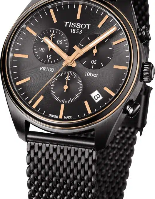 Tissot arranca el año con fuerza: ¡Es hora de redescubrir los clásicos! El PR 100 Chronograph se convierte en el modelo imprescindible de una de las colecciones esenciales e icónicas de la marca relojera suiza. El Tissot PR 100 forma parte de una de las familias más populares de Tissot y ofrece una amplia variedad de opciones. Esta vez su particularmente robusto diseño, que es a lo que hacen referencia las siglas PR, se traduce en unos atractivos modelos cronógrafos con cajas de acero inoxidable y finos acabados en PVD y brazaletes de malla milanesa. La combinación de materiales y colores disponibles hacen de este reloj el complemento perfecto para cualquier look.